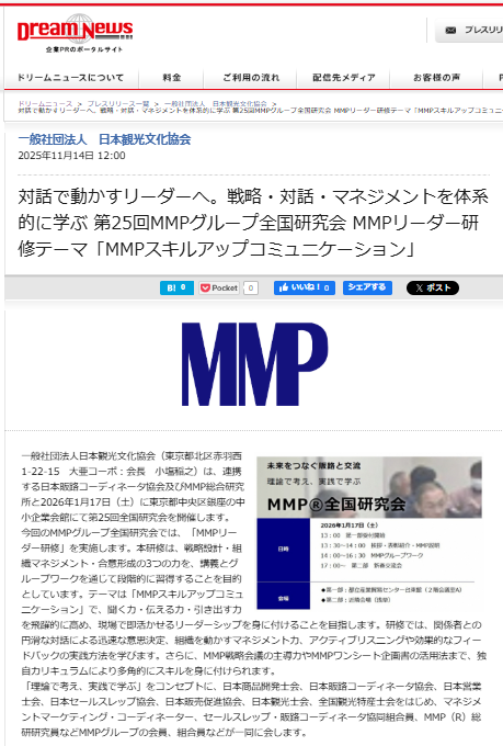 第25回MMPグループ全国研究会 MMPリーダー研修テーマ「MMPスキルアップコミュニケーション」が掲載されました。